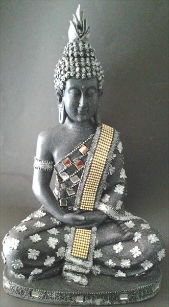 sitting budha with glass n golden swarovski work