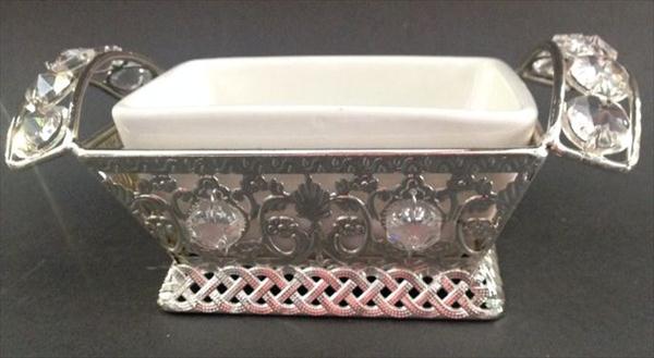 silver butter dish with swarovski