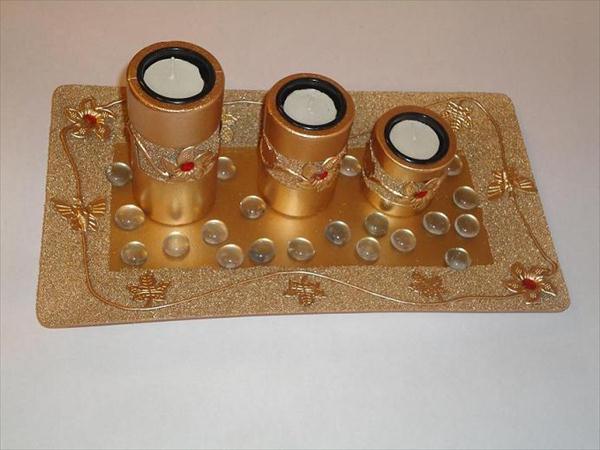 candle holder golden with red stone