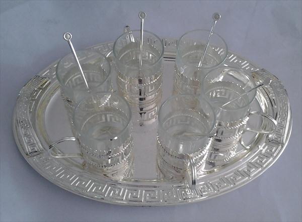 silver tray with six silver mugs n spoon
