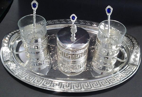 silver tray with two cava cup n one silver bowl